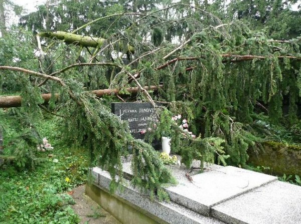 Nedeľa 19.8.2007 sa ukazovala byť ako hociktorý iný deň, aj keď po peknej sobote meteorológovia predpovedali zhoršenie počasia, búrky a pomerne silný vietor. Ten prišiel v popoludňajších hodinách a pri nárazoch roztancoval a povykrúcal konáre stromov v celej obci. Ale veď to nebolo po prvý krát, a až na sem tam zlomené konáre na stromoch, sa nič vážne nikdy nestalo. Nárazový vietor netrval ani tak dlho, ale čo narobil na našom obecnom cintoríne, nepamätajú ani tí starší občania.